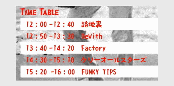 1st 18:45〜 2nd 20:15〜(17時開場)