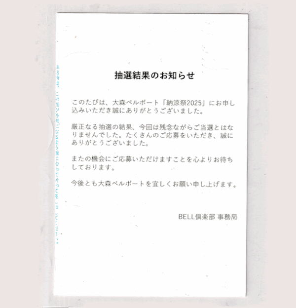 でも、ハズレでも往復はがきだからそれなりの回答があって然るべき。