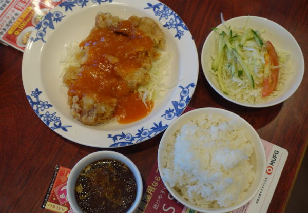 599円+税の日替わりランチは、チキンかつのチリソース。