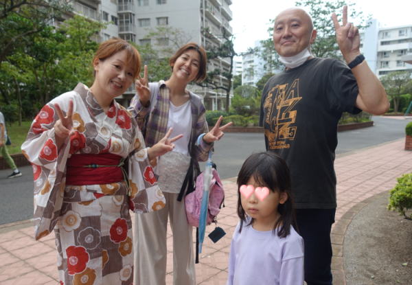 出演するDAZSの二人と、おいたえりこさん、あかりちゃんの親子。