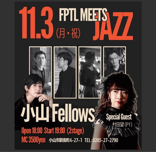 しかも今回はジャスピアニストの村田望さんをお迎えしまして、老舗の小山Fellowsさんにてライブを行います。