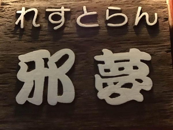 写真は1989年の開店直後暇な時間に厨房で彫刻刀を駆使して彫り上げた入り口の看板です。
