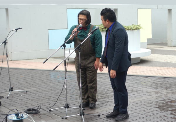 リードをしてくれたのは、ヨシモトの芸人さん。