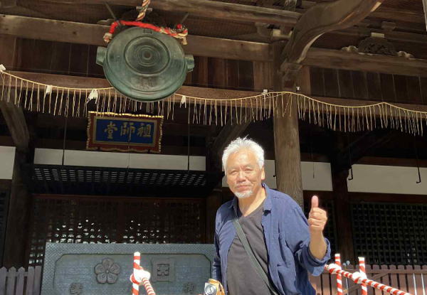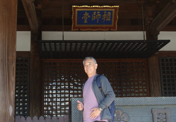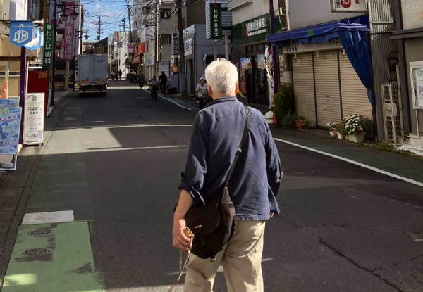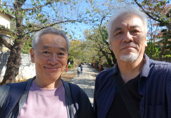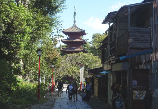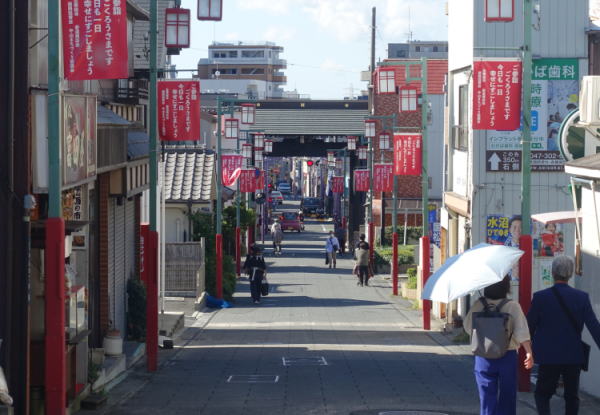 我々二人が座ったベンチの前を法華経寺に向かうたくさんの参拝客がのんびりと通り過ぎる。
