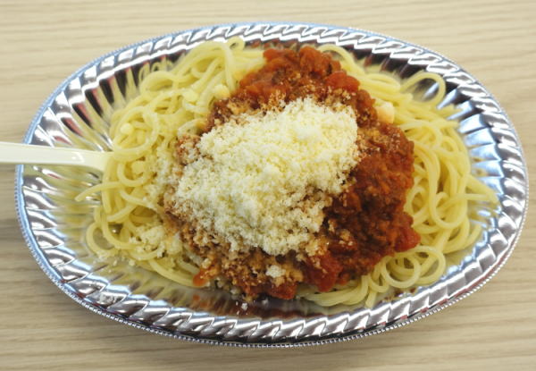 14時40分、遅い昼食はロピアのイートインでミートソース。