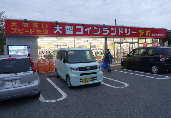 そうそう、車内に洗濯ものがあってどこかでと思ったら、いいタイミングでコインランドリーがあった。