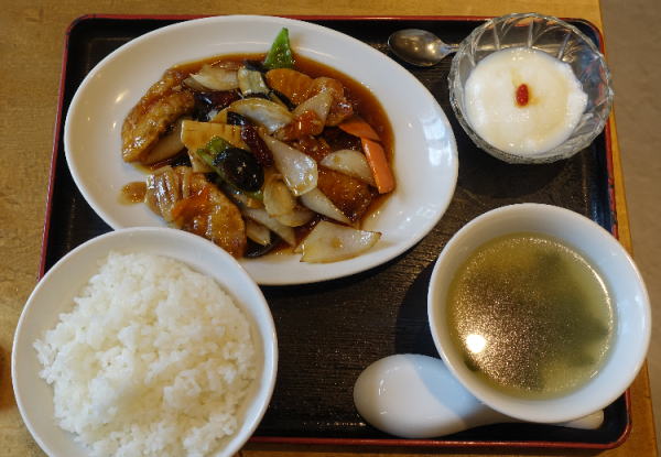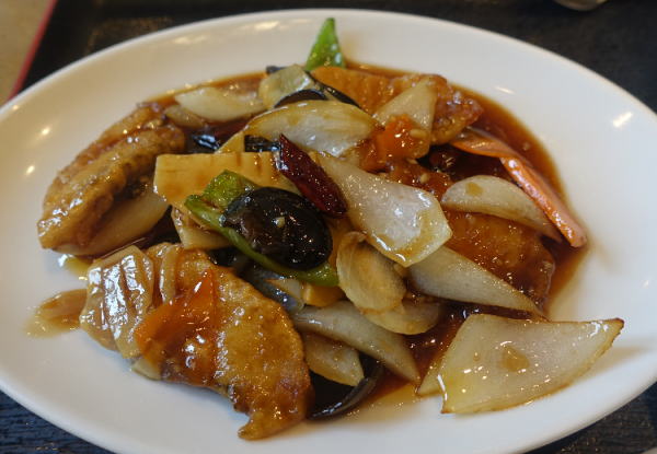 一見黒酢の酢豚の感じだけど、ややトロミのあるタレが美味しい。