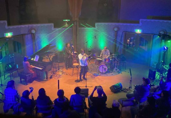 ベースの薫さんはジャジーなプレイやスラップを活かした超ごきげんなサウンドなどドラムレスでも圧巻のリズムを醸し出す。