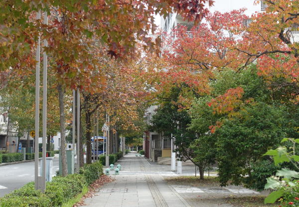 ベイタウンの木々も紅葉が進んできた。