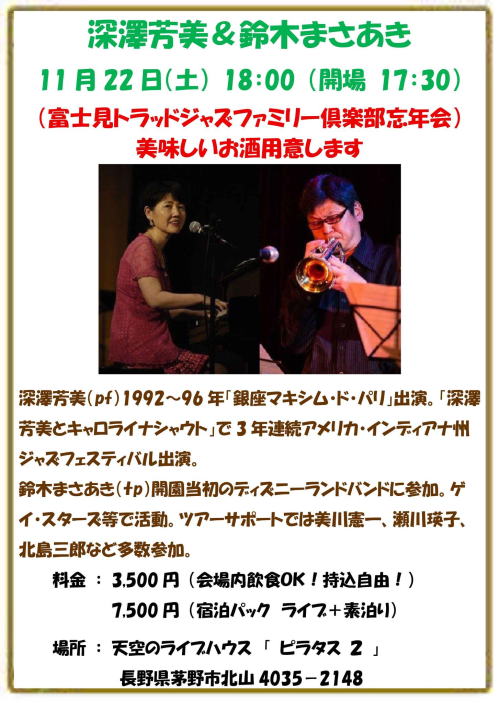 ライブ ディレクション : 柴崎 隆 (mail Tel: 090-8726-2468) 有水 淳