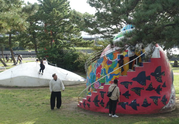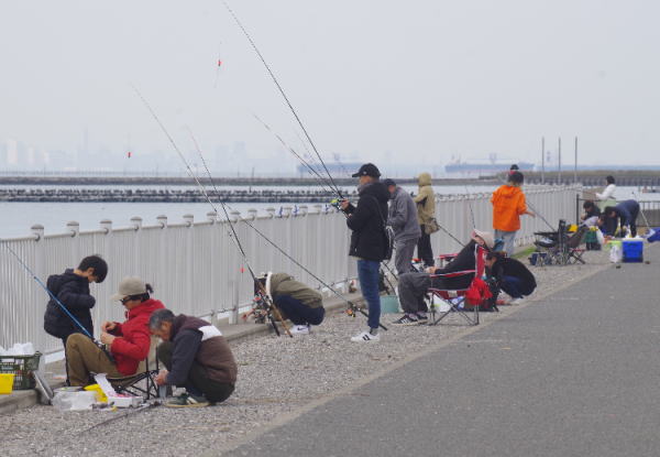 宮川丸などの渡し船に乗る人と、公園で釣りをする人のクルマで殆どいっぱい。