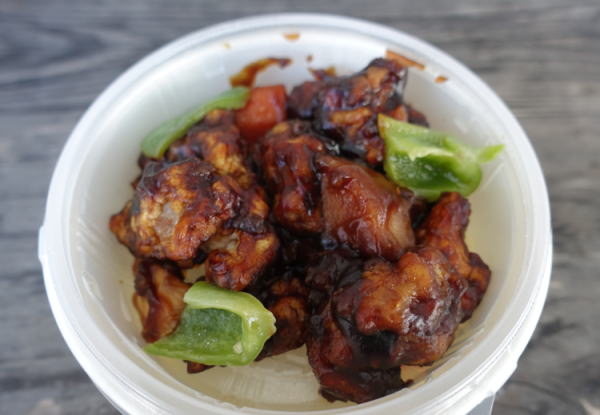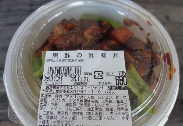 前出の立ち食い寿司屋の向かいの弁当屋さんで、黒酢豚弁当。