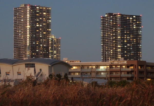 更に少しが経って暮れなずむ幕張の浜からのスカツリ。
