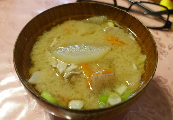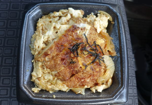 未明の朝食は昨夜、ちょい安く買った豚の焼肉弁当。