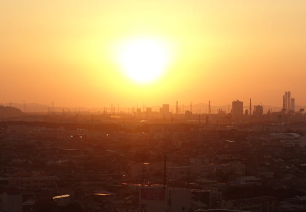 一眼レフじゃないとこのくらい明るい夕陽を射止められない。