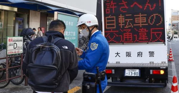 大阪府では道路交通法の改正と2023、24年と2年連続で自転車事故の死者数が全国最多を記録したことを背景に取り締まりを強化。今年に入って395人が免許停止処分となっている(27年は19人)