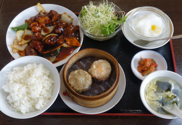 一見、牛に見えるけれど、甘辛く、いい色具合に調理された豚肉がいい。