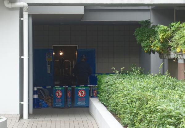 東側のエレベーターはリニューアル工事中。