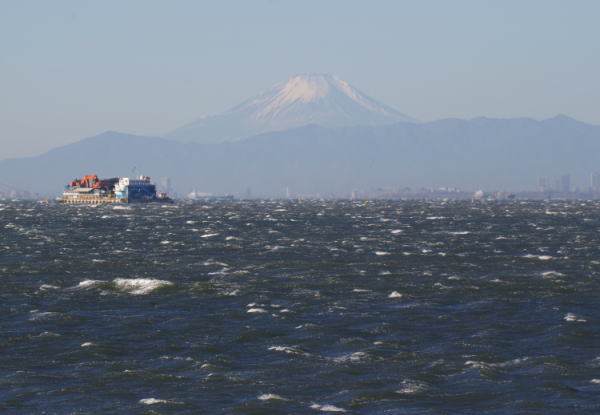 空気が乾燥しているので、富士を見に幕張の浜まで。