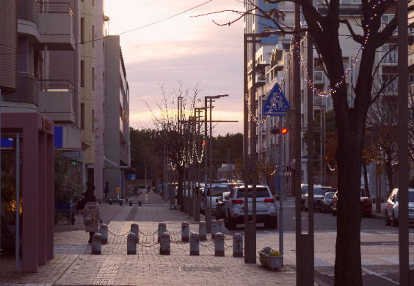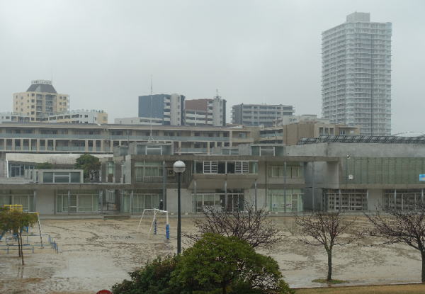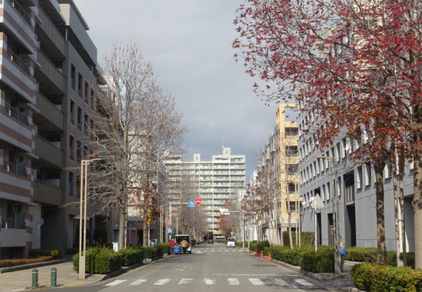 雨でも快適な歩きが出来るのは、ベイタウン、ベイパークの環境のお陰。