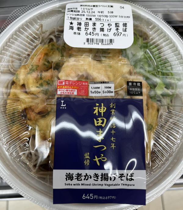 LAWSON限定神田まつや監修『海老かき揚げそば』毎日数量が限定されているのでタイミングが合わないと中々買えない電子レンジ対応の蕎麦です