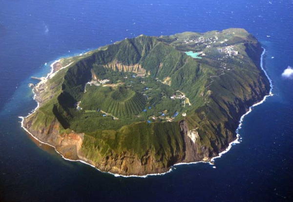 住居がある地区は、この写真では右上の外輪山が比較的平坦に見えるところである。