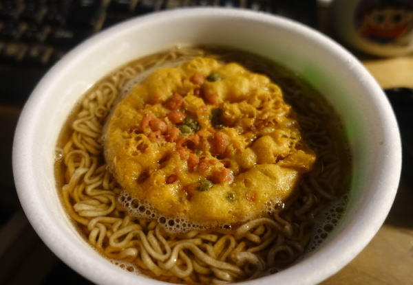 早朝に用事があり、出かけるので、カップ焼きそば。