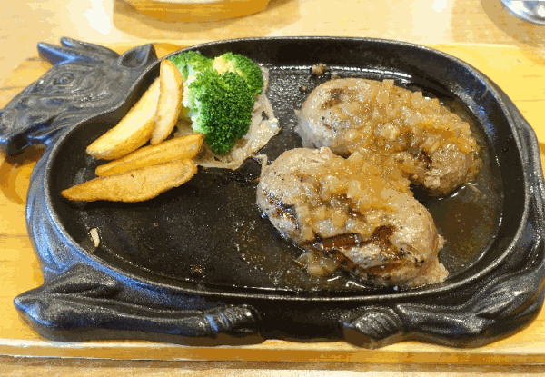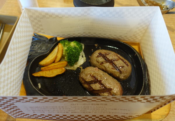 俵ハンバーグの200gをメインに、サラダバー、カレーバー、スープバーなどが付く、プレミアムセットを注文。