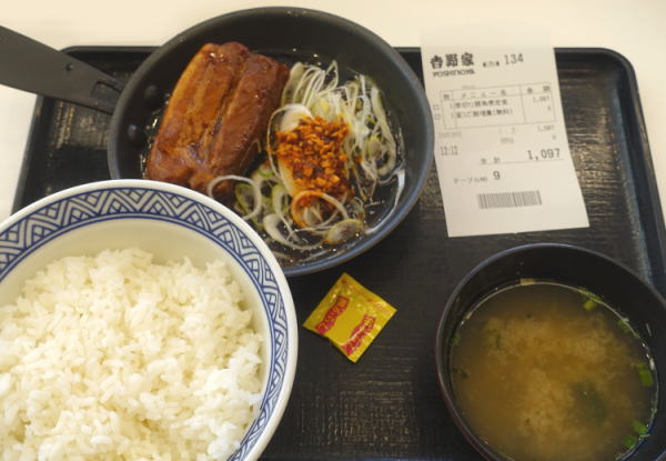 昼食は野菜をどーんと摂りたいと、「牛すき鍋御膳」+「野菜サラダ」というオーダーと思って行ったのに、新メニューの豚角煮定食になってしまった。