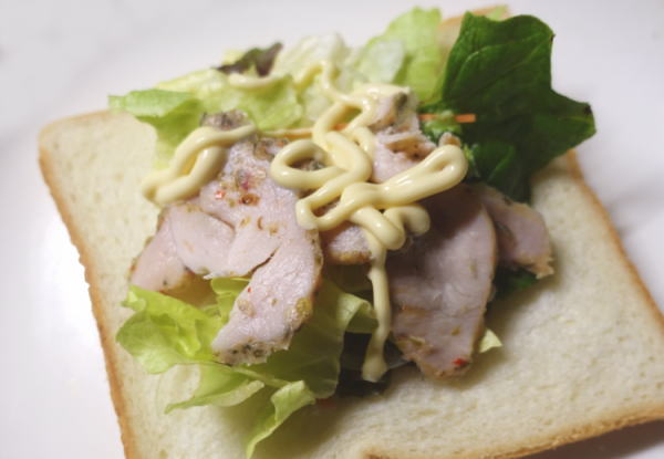 このビジュアルだと分かりにくいけれど、チーズ、レタスに埋もれている下にバンズとえーとなんだっけ?肉のやつが隠れている。