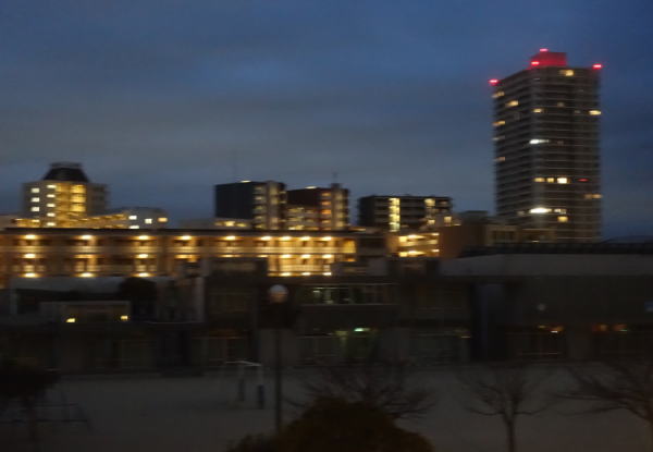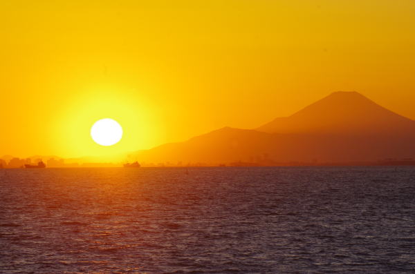 幕張の浜の現在(2月9日)の日の入りは、こんな感じ。