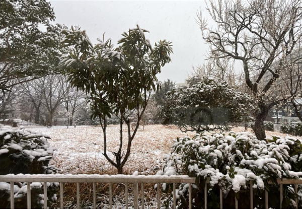 ワタシも今、ゴミを捨てにちょこっと外に出たが、この界隈は全然積もってない。
