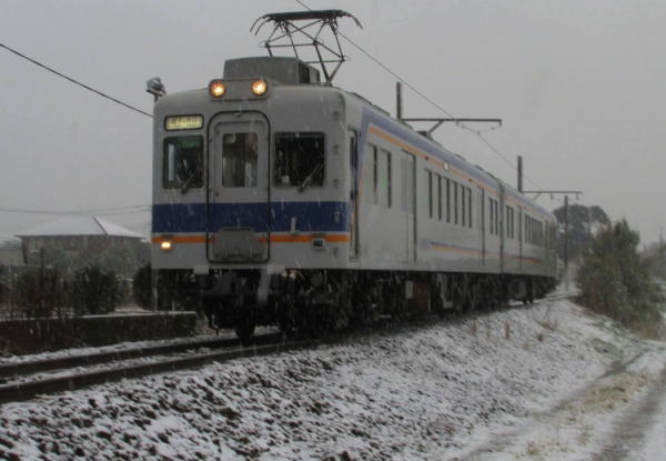 2月7日、雪景色となった中を走るなんかいい電車です。(^^)