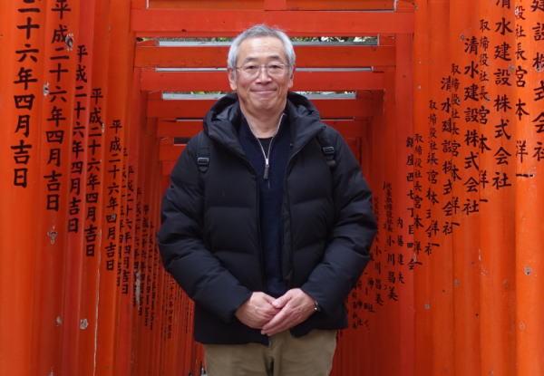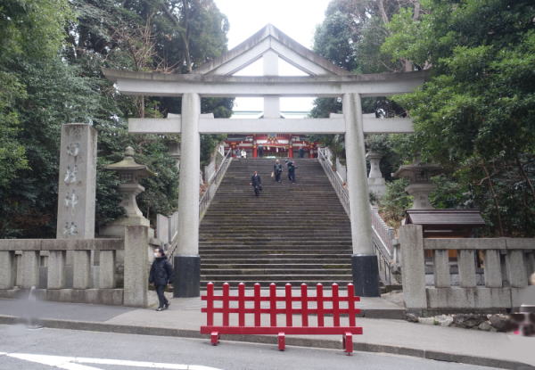 鳥居の前に立つ。
