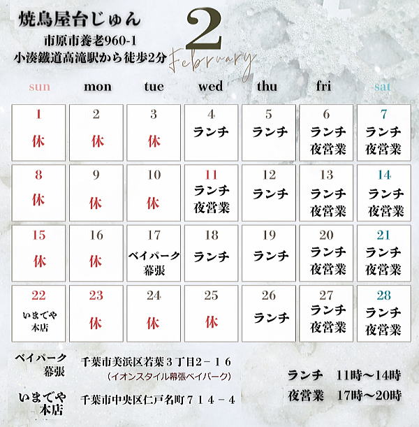 焼鳥屋台じゅん 2月予定