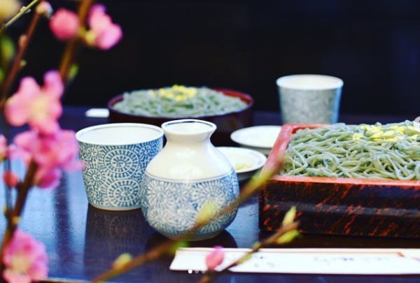 さらしな蕎麦に練り込まれた蓬(よもぎ)で春の香りを感じていただければ幸いです。