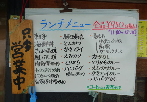 お、刺身定食、海鮮丼もあるな。