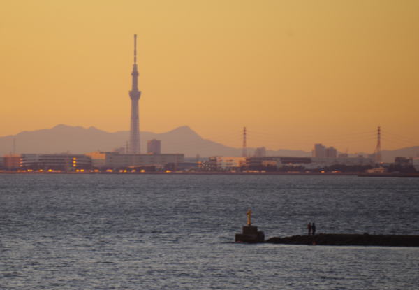 幕張の浜のこちらの方向(北西)に冬になると現れる山。