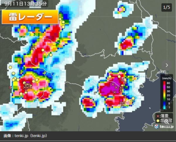 午後2時過ぎ、東京23区でゲリラ豪雨。