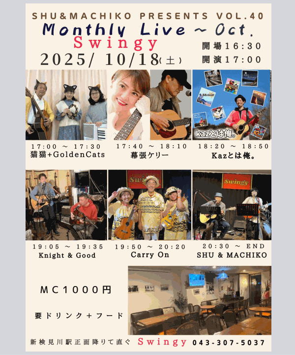 今回もソロ弾き語りの方からバンドの方々まで盛りだくさんでお届けします。