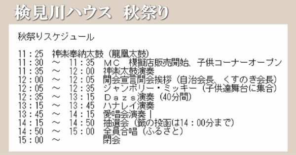 10月4日(土)は検見川浜駅の近く、住友・検見川ハウスの秋祭りです。