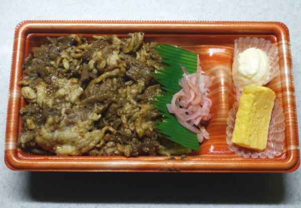 未明の朝食は昨夜、ちょい安く買った豚の焼肉弁当。