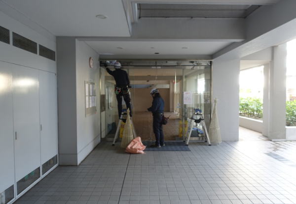 サブエントランスの自動ドアの修理。