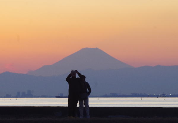 この落日ポイントが、毎日、徐々に富士山のほうへ動いていって、2月20日の頃、幕張の浜でダイヤモンド富士が見られる寸法なのだ。